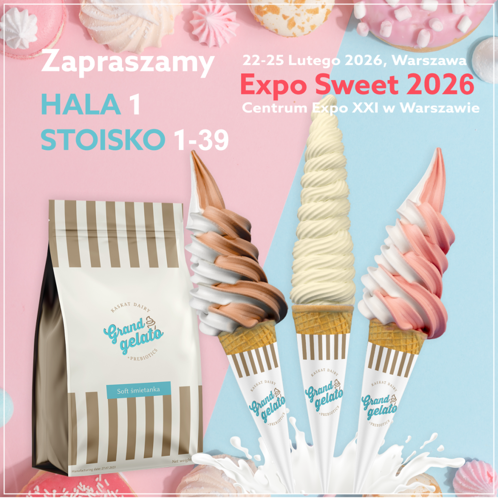 - Grand Gelato na Expo Sweet 2026 – już niedługo w WarszawieChoć sezon lodowy jeszcze się nie rozpoczął, w Grand Gelato intensywnie przygotowujemy się do nadchodzących wydarzeń branżowych. Jednym z najważniejszych punktów w naszym kalendarzu jest udział w Expo Sweet 2026 – największych w Polsce targach branży cukierniczej i lodziarskiej, które odbędą się od 22 do 25 lutego 2026 r. w Warszawie. To wyjątkowa okazja, by spotkać się z partnerami biznesowymi, klientami i specjalistami z całej branży, zaprezentować nasze najnowsze rozwiązania oraz wymienić się doświadczeniami. Gdzie nas znaleźć: Hala główna nr 1 | Stoisko 1-39 Podczas targów zaprezentujemy nasze unikatowe lody Grand Gelato z kompleksem prebiotycznym – produkty, które łączą wysoką jakość, innowacyjność i wyjątkowy smak. Odwiedzający będą mogli spróbować zarówno lodów włoskich typu soft, jak i lodów amerykańskich (świderków) – idealnych inspiracji na nadchodzący sezon. W realizacji naszej prezentacji wspierają nas cenieni partnerzy branżowi: Sachart – producent maszyn do lodów amerykańskich GelMatic Polska – dostawca maszyn do lodów soft Soforek – producent wafelków Serdecznie zapraszamy do odwiedzenia naszego stoiska i osobistego spotkania z zespołem Grand Gelato – chcemy pokazać, co nowego i inspirującego przygotowaliśmy na 2026 rok. Osoby zainteresowane bezpłatnym zaproszeniem na targi prosimy o kontakt: +48 539 094 668 Do zobaczenia na Expo Sweet 2026 w Warszawie!